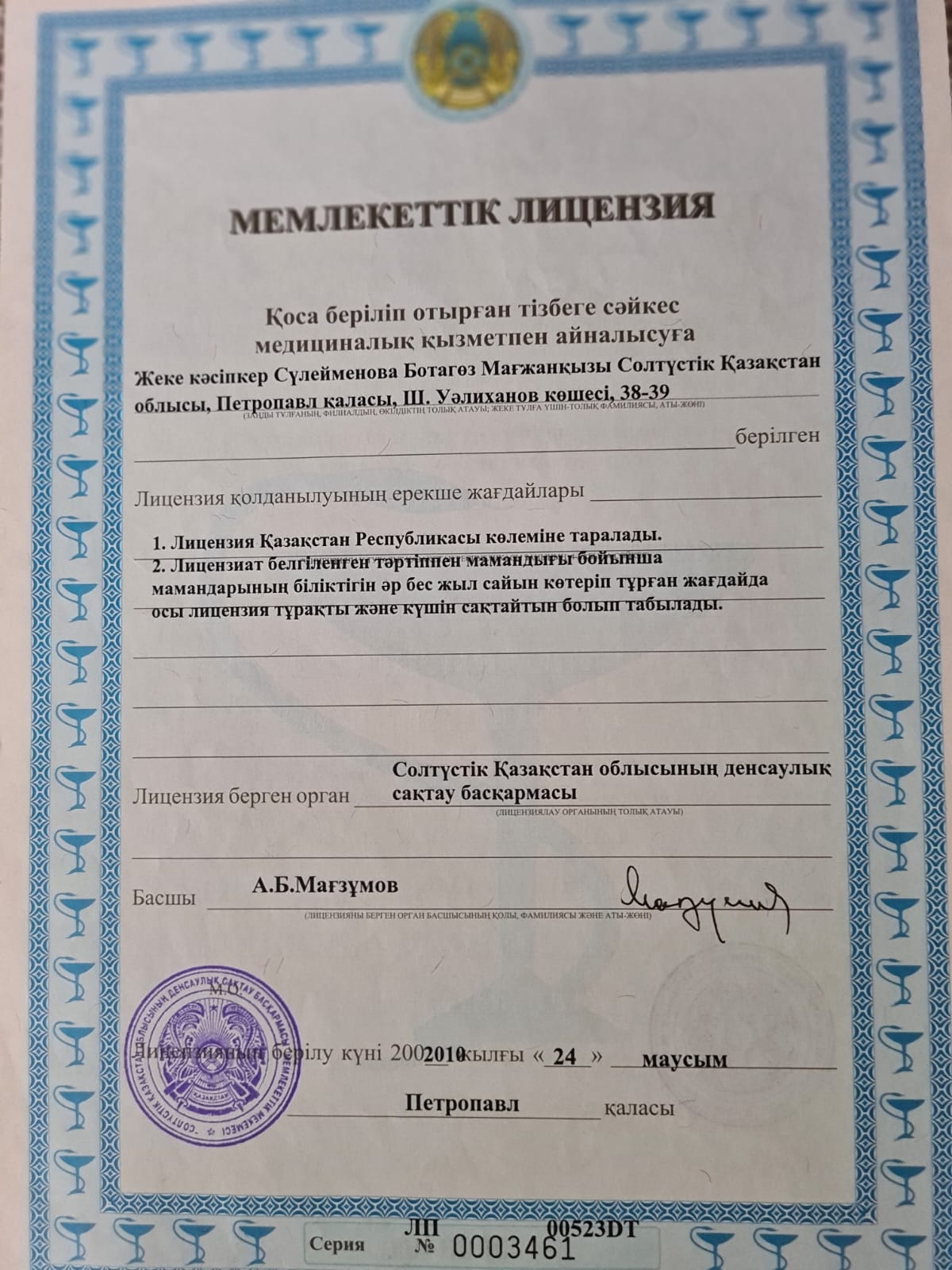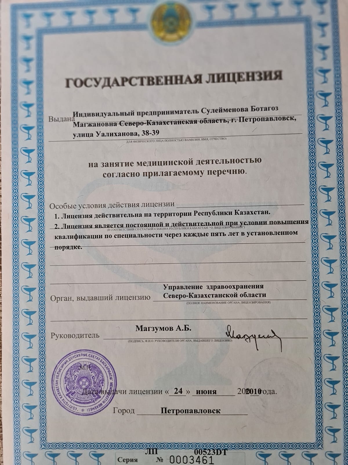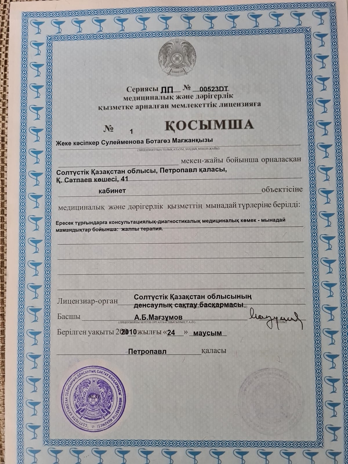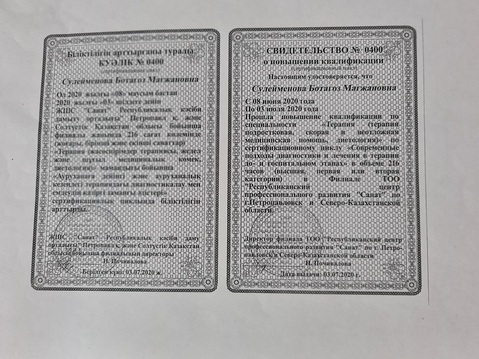 Терапевт железнодорожной больницы г. Петропавловск